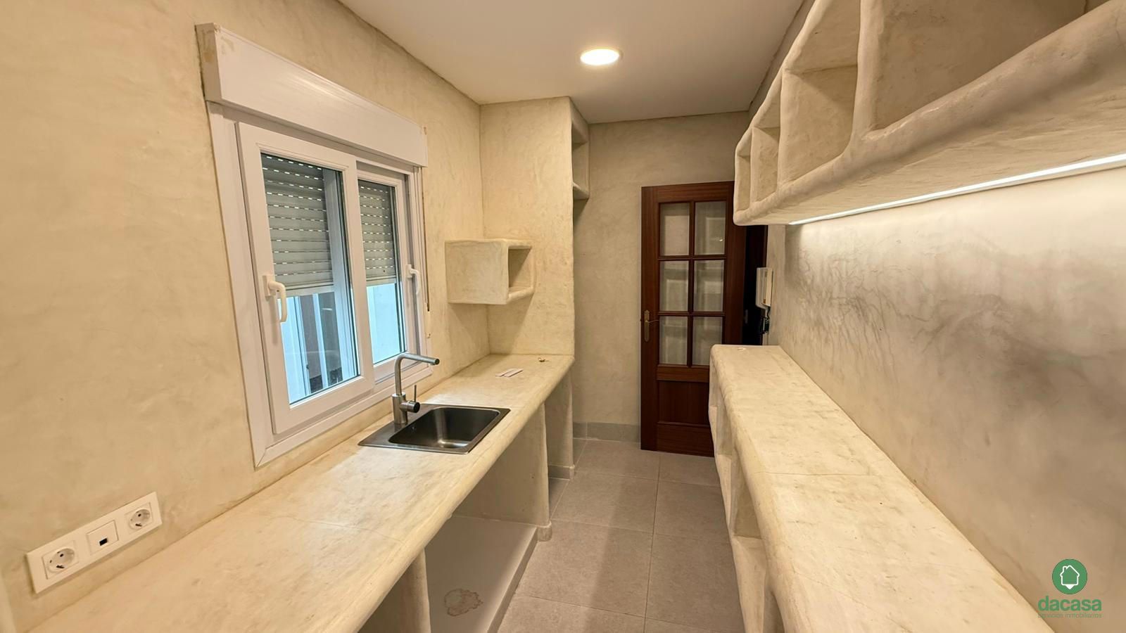 La propiedad se distribuye en tres dormitorios, dos de ellos de amplias dimensiones, destacando el dormitorio principal con baño en suite que aporta privacidad y confort. En total cuenta con dos baños completos, un gran salón ideal para disfrutar en familia o con amigos, y una cocina moderna y funcional, de estilo minimalista con acabados en estuco, que combina elegancia y practicidad.